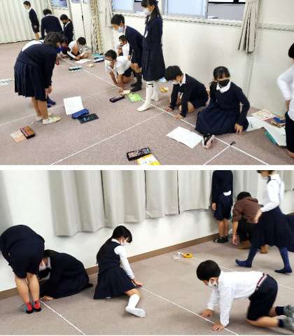 5年生では「ならした大きさで表そう」について学習しています。今回は、歩幅を使って道のりを調べるために、自分の歩幅を求めます。