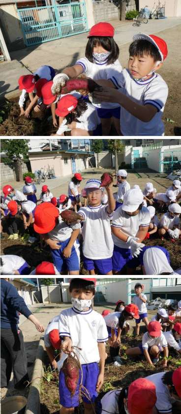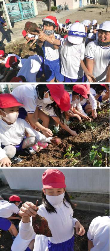 2年生が、第2運動場で春から育てていたサツマイモの収穫を行いました。どの子もサツマイモを手にとてもうれしそうです。