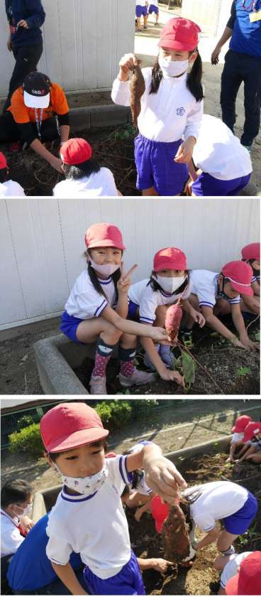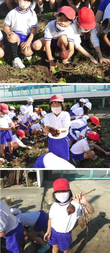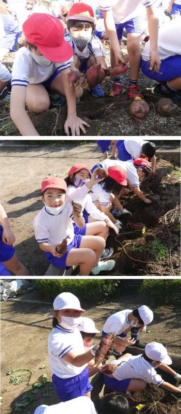 2年生のいもほり。サツマイモの周りを手でていねいに掘り出しました。とても大きいサツマイモあり大きな秋の収穫となりました。