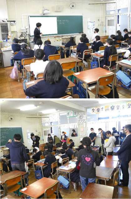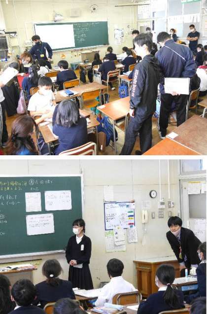 5年生の算数で研究授業が行われました。単位量あたりの大きさで、人口密度などを比べていく方法を考えて意見交流をしました。