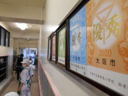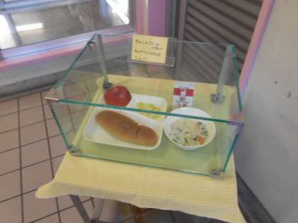 給食当番の子どもたちが、これを見て盛り付けの参考にします。