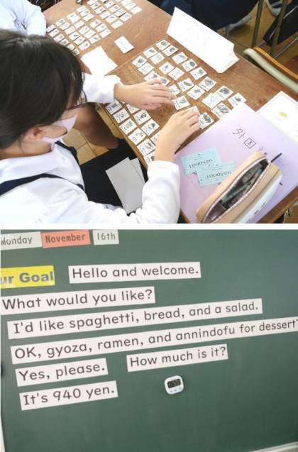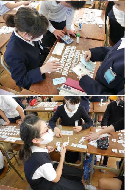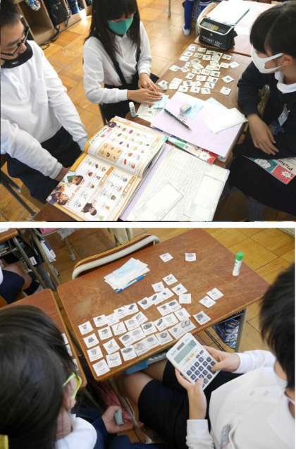 5年生の英語では、カードを使ってお買い物をしているシミレーションをしながら学習しています。いくらになりましたか。