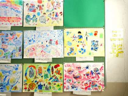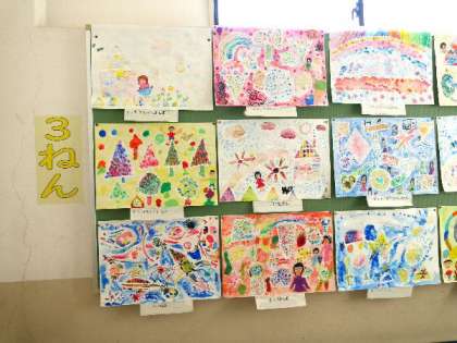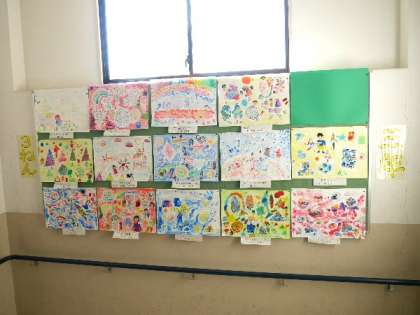 3年生の掲示板に、すてきな水彩画が掲示されています。