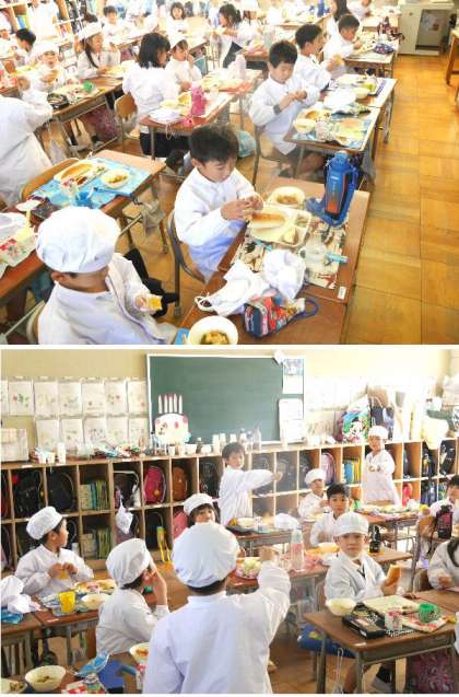 給食が残ると、希望者でじゃんけんでとりあいになります。いつも、しっかり残さず食べていますね。
