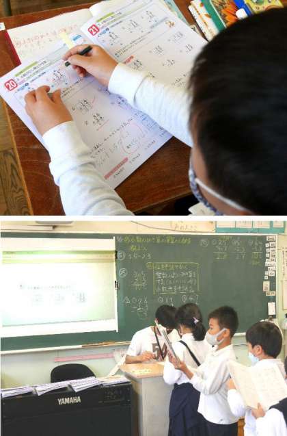 3年生の算数は、習熟度別少人数で授業を行っています。小数のひき算の計算を練習していました。