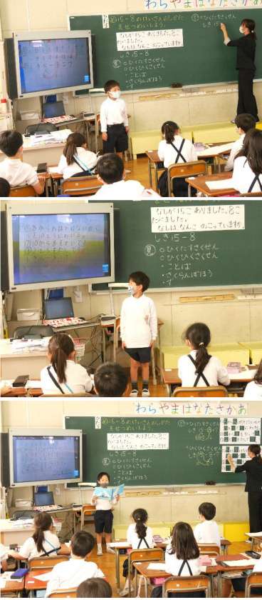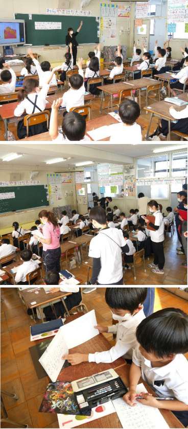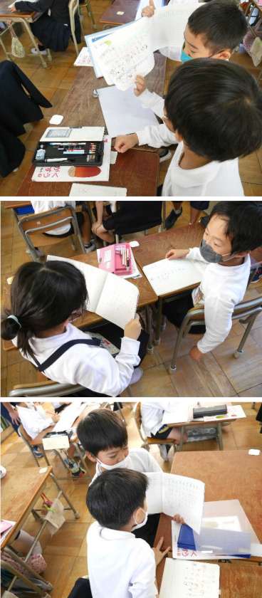 1年生の算数で研究授業をおこないました。先生がたが参観しての勉強会です。くりさがりのある引き算の計算の仕方を、ともだちに説明することができることが目標でした。