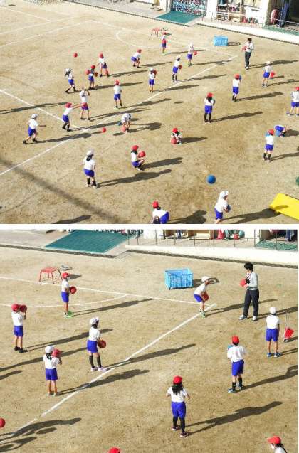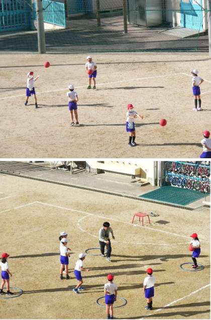 3年生の体育では、ポートボールの練習をしていました。ルールを知って楽しく競技できるように練習しましょう。
