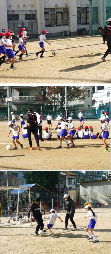 3年生では、セレッソ大阪のコーチなどにきていただき、出前授業を行っていただきました。子どもたちとコーチ3人との試合をして楽しいひとときをスポーツで体を動かしました。選手のボールさばきに、なかなかボールをとることができません。