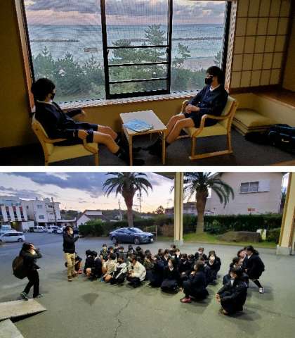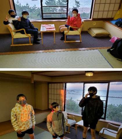 各自の部屋にはいり、ゆっくりして、避難訓練で玄関に集合です。