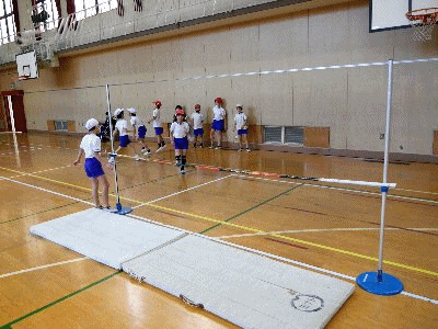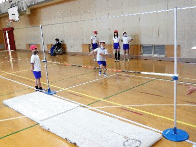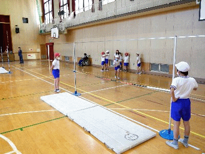 3年体育では、走り高跳びをしています。何センチの高さまで跳べるかチャレンジしています。