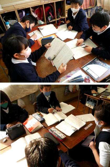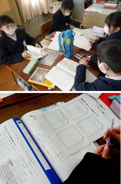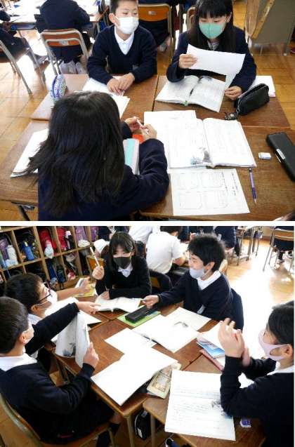 5年生の国語では「大造じいさんとがん」について学習しています。朗読カードで朗読を聞いて感じたことを書いて、大造じいさんの人物像について想像して話し合っています。