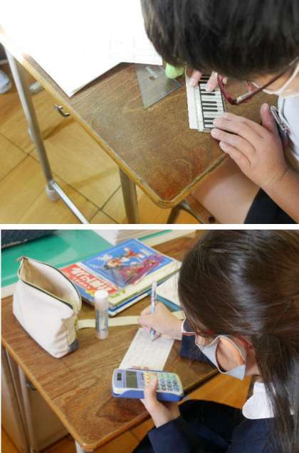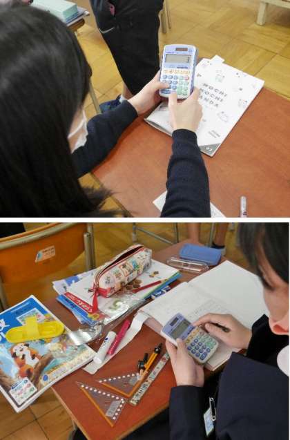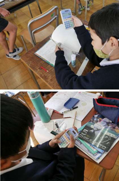 スティックのりなど丸いものの円周と直径を測って、計算で演習率をだしています。