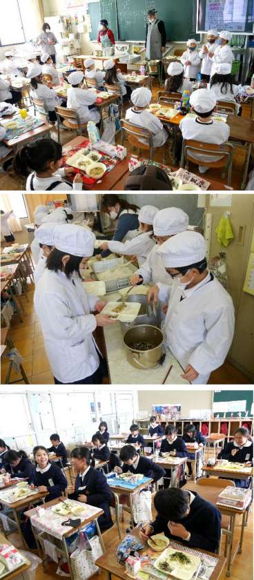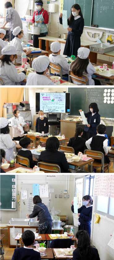 給食の時間に高学年の各委員会の児童が、教室で今月の目標などを連絡しました。