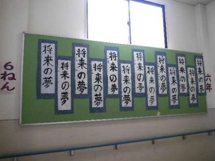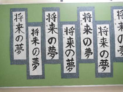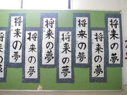 6年生の掲示板に、書き初め「将来の夢」が掲示されています。しっかりとした字が書けていますね。