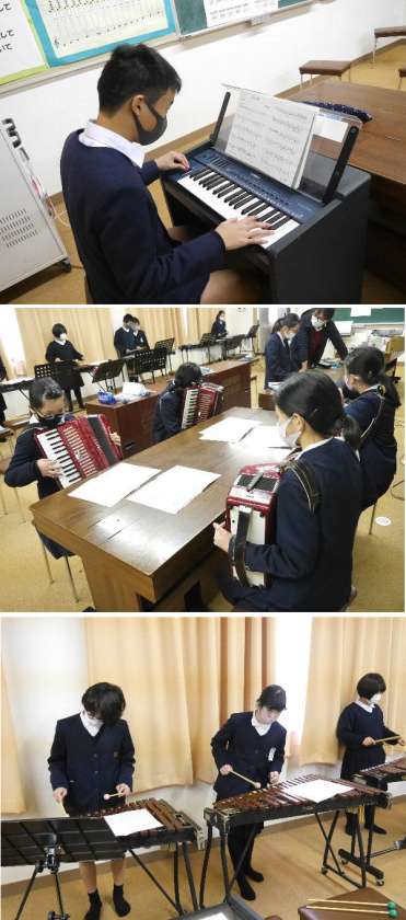6年生が合奏の練習をしています。卒業にむけた最後の合奏になりそうです。各楽器ごとにパート練習でがんばっています。