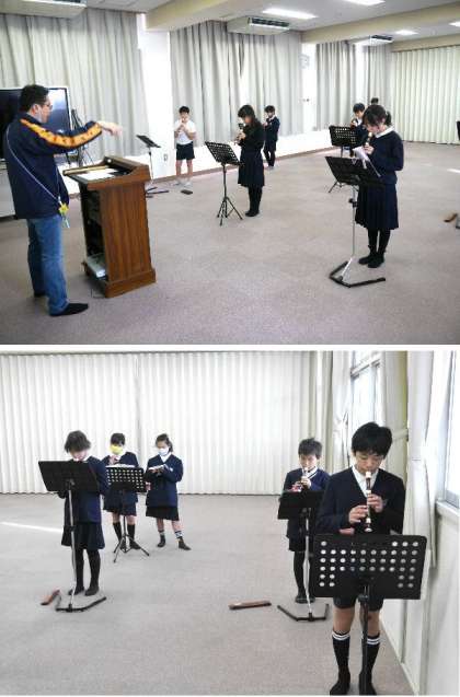 5年生の合奏練習がすすんでいます。メロディ担当のリコーダは、別室で間隔をとって練習しています。