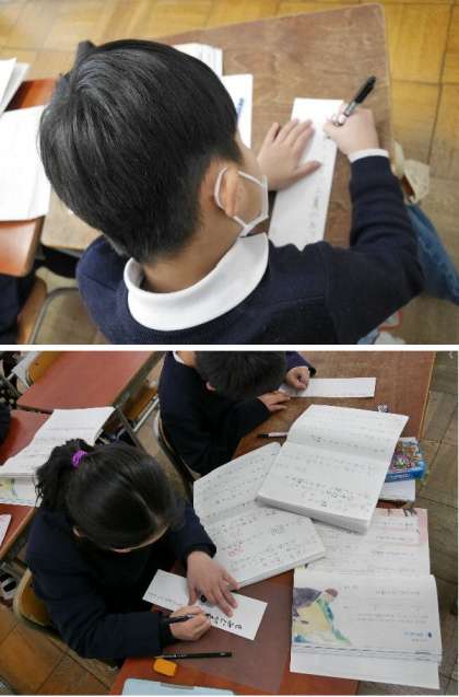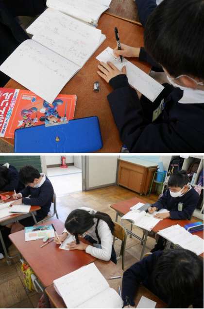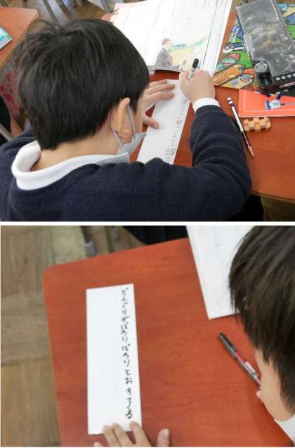 3年生が俳句を作って、清書しています。5・7・5のたった22文字ですが、けっこうむずかしいものてす。