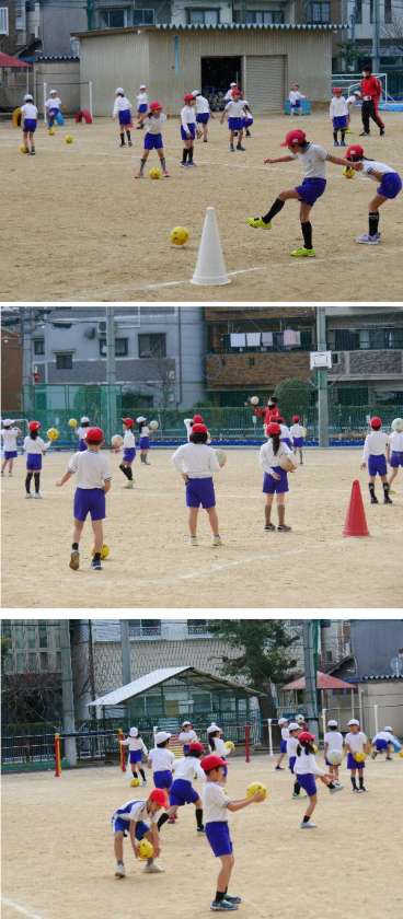 今日は、都軸の運動能力向上支援事業として、講師先生が来校され、各学年でサッカーの練習をしていただきました。リフティングなどボールを上手にけったりする練習です。なかなか思ったようにボールがいかないですが、子どもたちはいろいろな練習方法に取り組み楽しみながら運動をしていました。