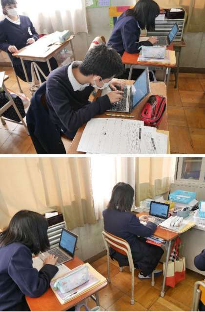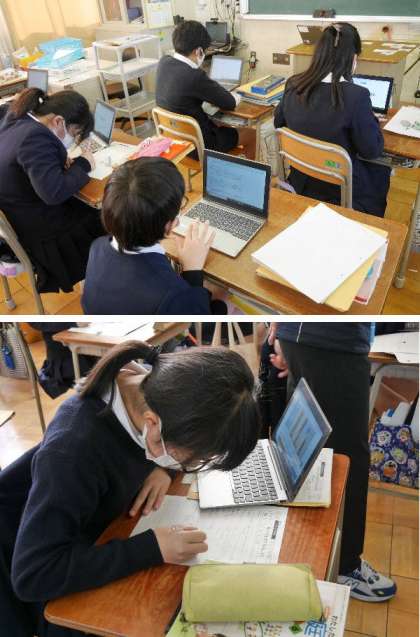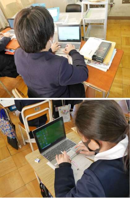 6年の家庭科では、「自分の生活を改善しよう」と新しいパソコンを使って調べているところです。