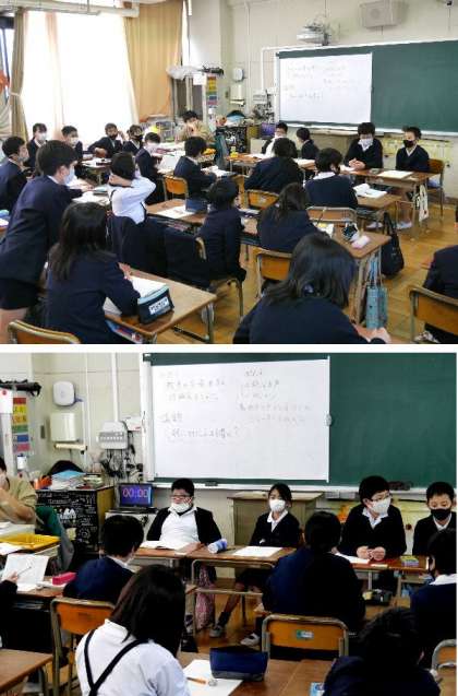5年生が討論会をしています。議題は「弱いロボットは必要か」です。議事進行役が前に座ってすすめています。おもしろそうな議題です。みなさんの意見はどうですか。