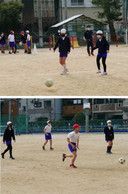 5年生で、都島区の運動能力向上事業で、講師先生からサッカーを教えてもらっています。