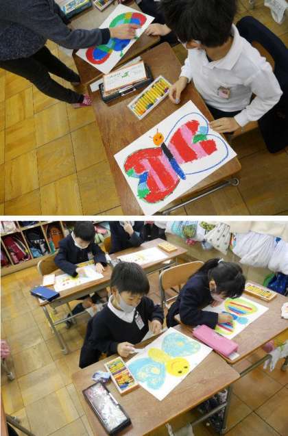 2月4日 1年図工!カラフルなちょうちょ