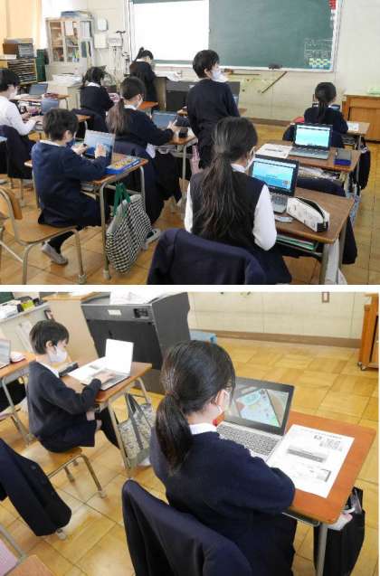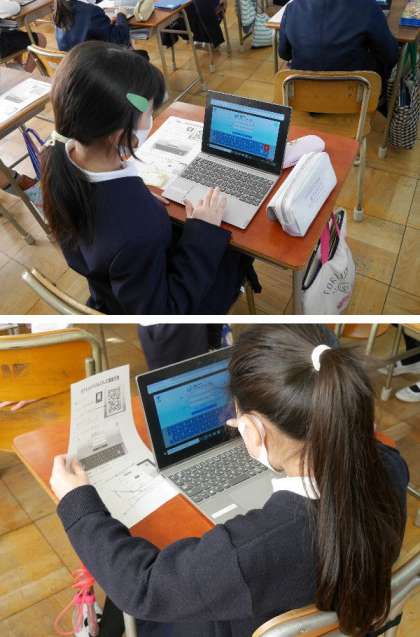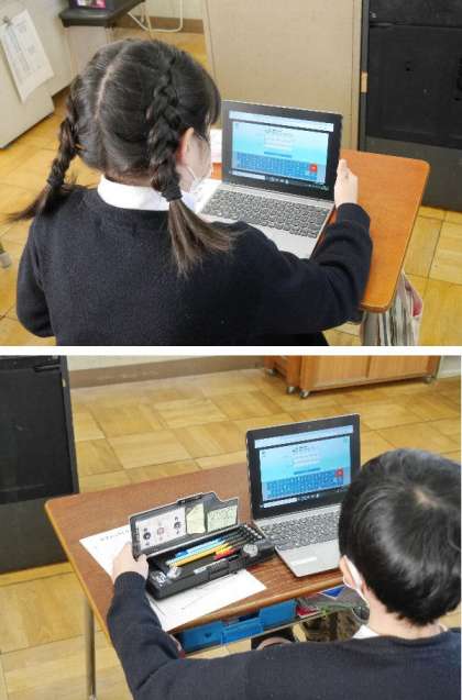 4年生が新しいパソコンでタブレットドリルにログインしています。
