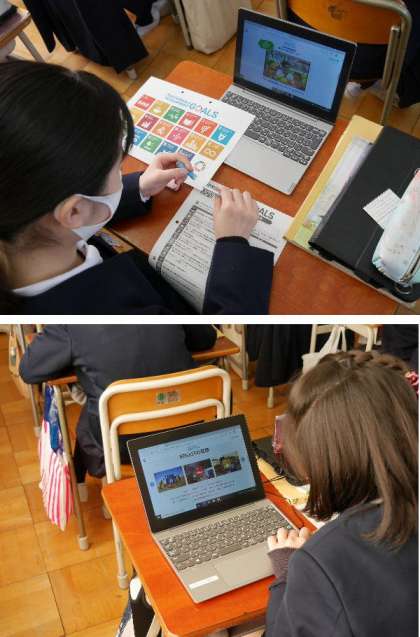 5年生が新しいパソコンで調べています。SDGs(持続可能な開発目標)について調べていました。国際社会共通の目標です。
