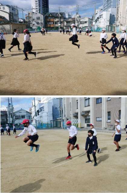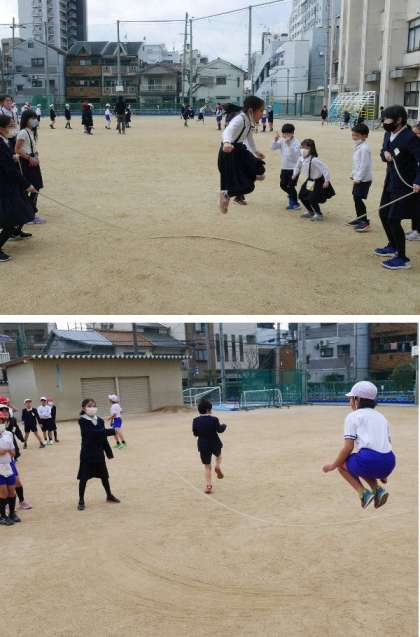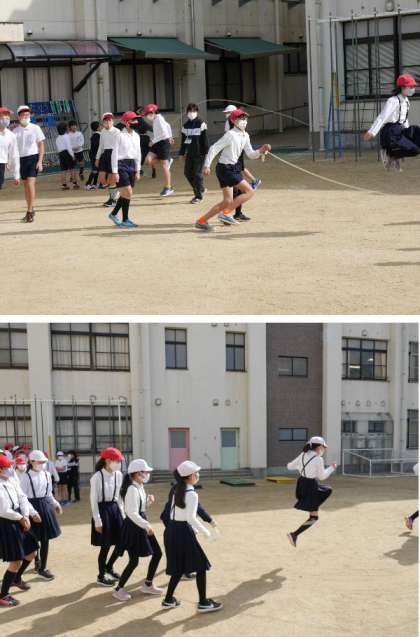 なわとび週間でおおなわとびをしています。さすが6年生です。とぎれることなく上手に跳んでいます。3年もがんばっています。