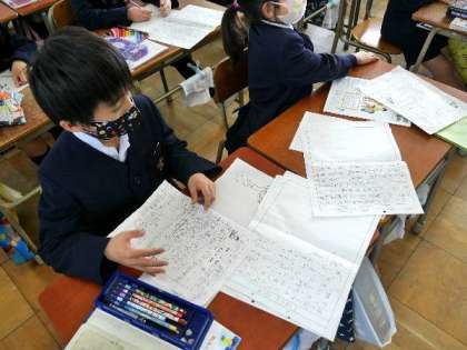 2年生では、大きくなった自分のことを振り返り、できるようになったことなどを文章にまとめています。九九ができるようになったと書いている子が多いですね。