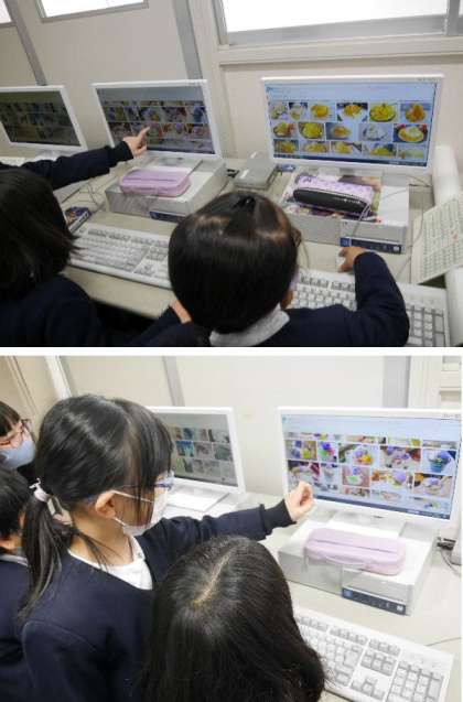 3年生では、外国の文化や食を紹介しようと、インターネットで調べて資料を集めています。とてもおいしそうな写真ですね。