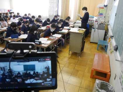 5年生の国語の授業です。教育センターとオンラインでつないでみてもらっています。