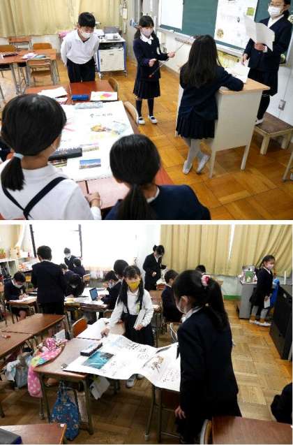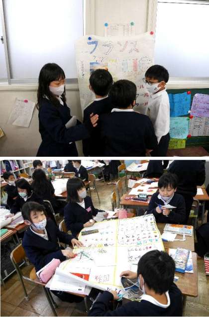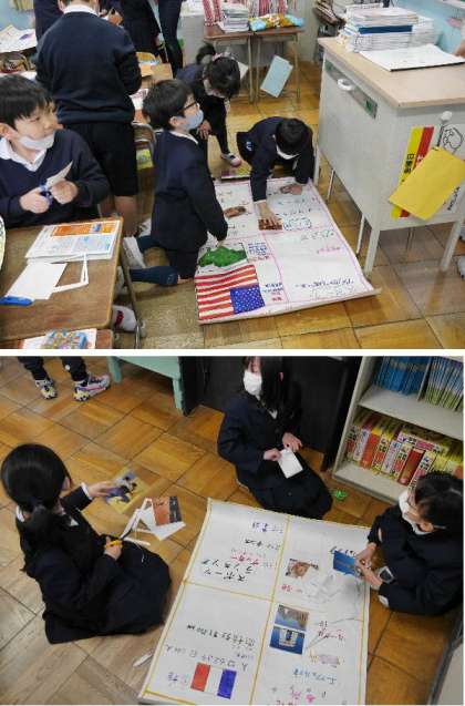 3年生が調べた外国を紹介する情報をポスターにしています。