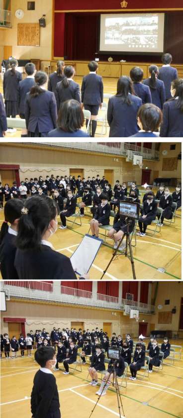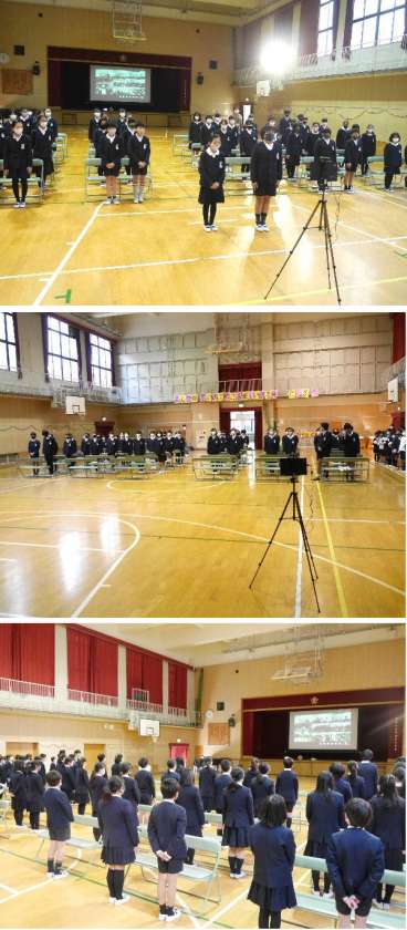 6年生を送る会の最後は、みんなで「さよなら 東都の6年生」を各教室で歌いました。児童会の代表から終わりの言葉があり、花道を6年生が退場していきました。