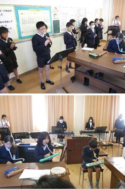 5年生が、6年生に贈る曲を合奏しています。最後の仕上げですね。