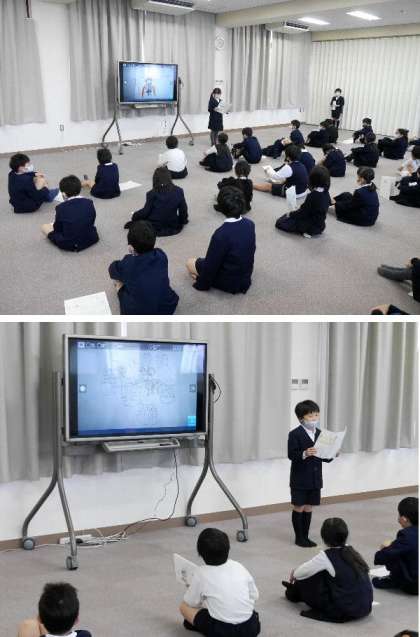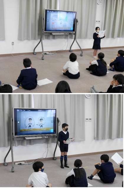 2年生が参観の発表の練習をしています。自分の言葉でしっかり伝わるようにがんばっています。