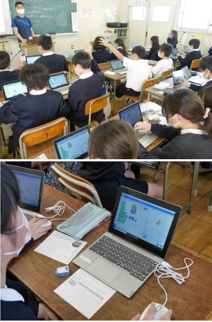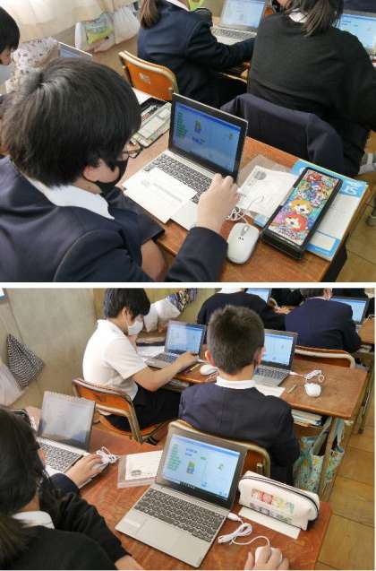 5年生がパソコンでプログラミングをしています。算数の多角形をかくプログラムを作っています。
