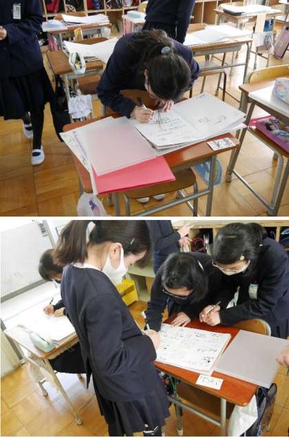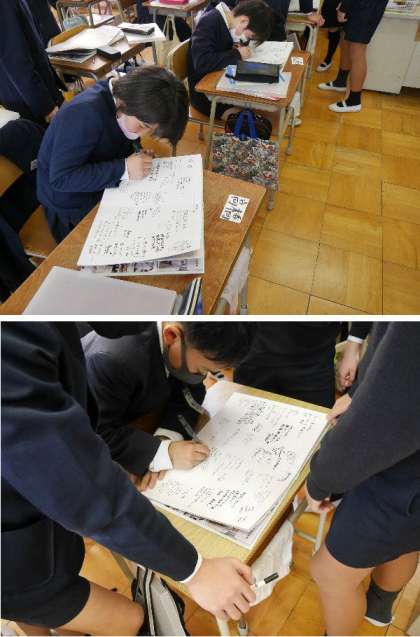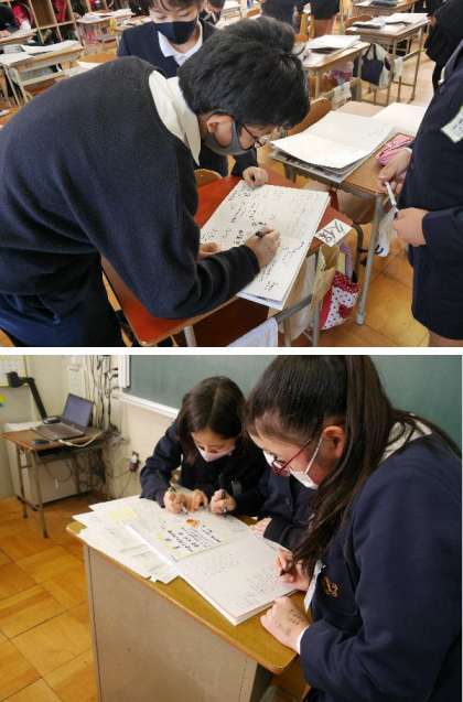 6年生が卒業アルバムを交換しあって寄せ書きをしています。いよいよ卒業ですね。