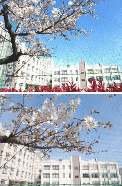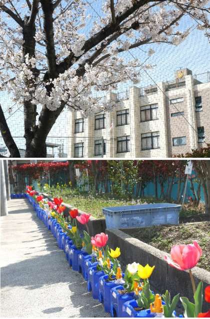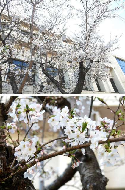 校庭の桜の花が開花!あたたかくなり、すっかり春がきました。