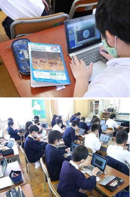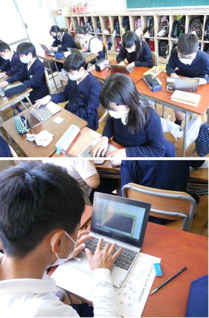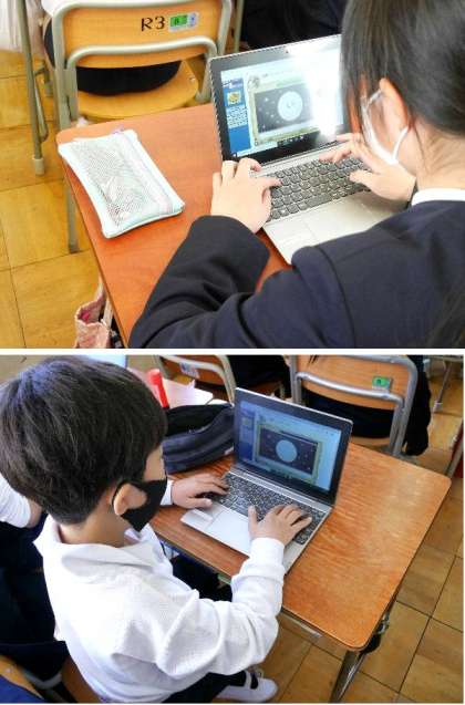 6年生が、一人一台パソコンで、キーボードから文字入力を練習するアプリで入力練習をしていたした。