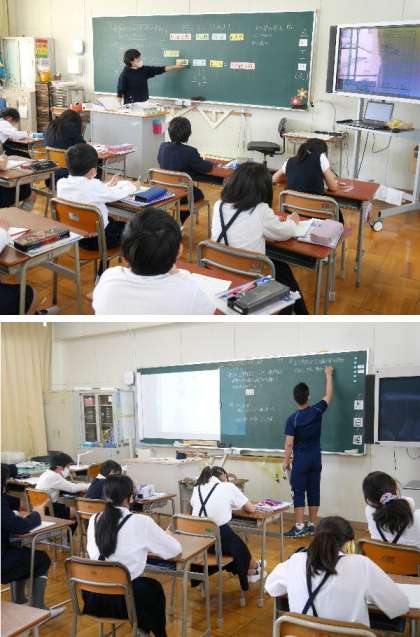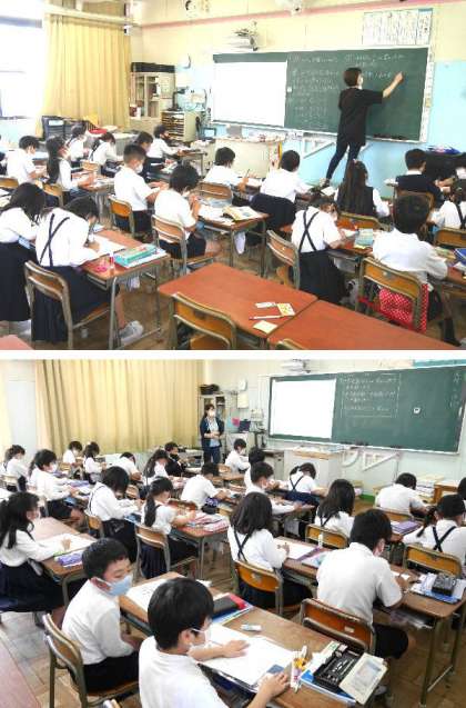 3年生と6年生の算数の授業です。算数は毎日の継続学習が大切です。時短授業ですが、習熟度別少人数授業でもしっかりと学習を続けています。