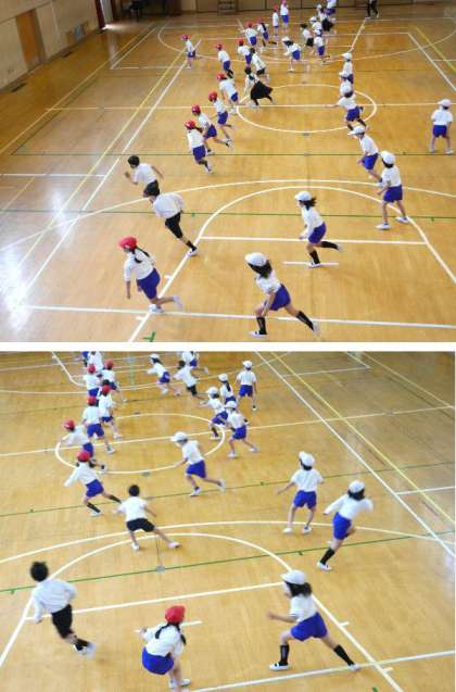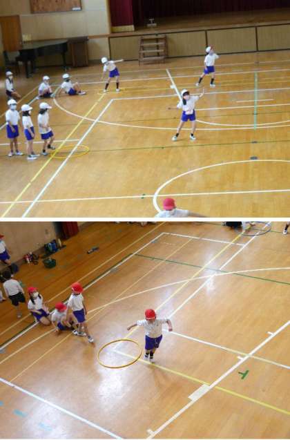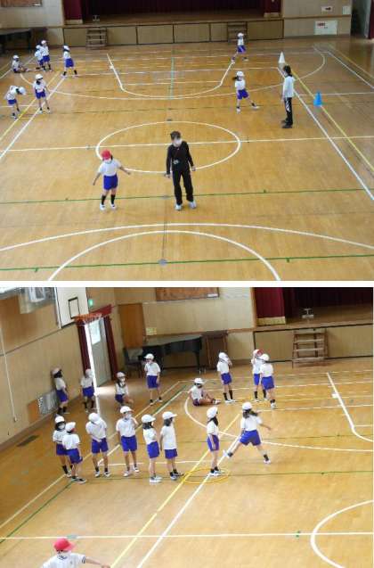 2年生の体育が体育館で行われていました。体も毎日使わないとなまってきます。体育の授業でいろいろなからだの動かし方をしています。