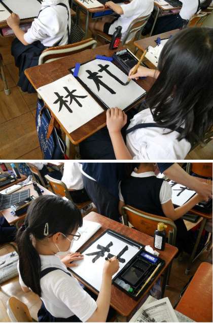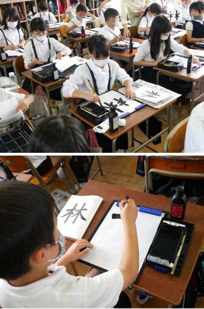 4年生が書写で「林」を書いています。なかなか納得のいく字がかけなくて、何度も書き直していました。