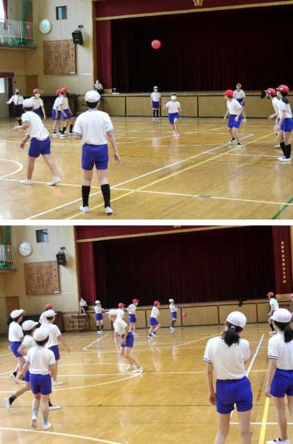 6年生が体育の授業で、ひさしぶりなドッヂボールをしていました。