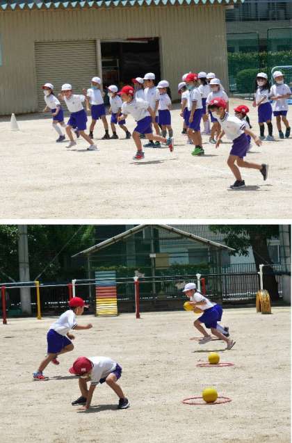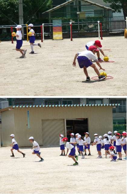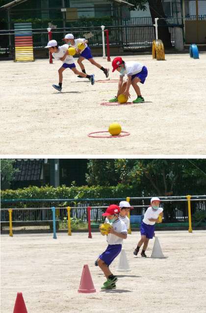 1年生が、走ってボールを取ったり、からだをしっかり動かす学習です。ひさしぷりに晴れて、さわやかな日でした。