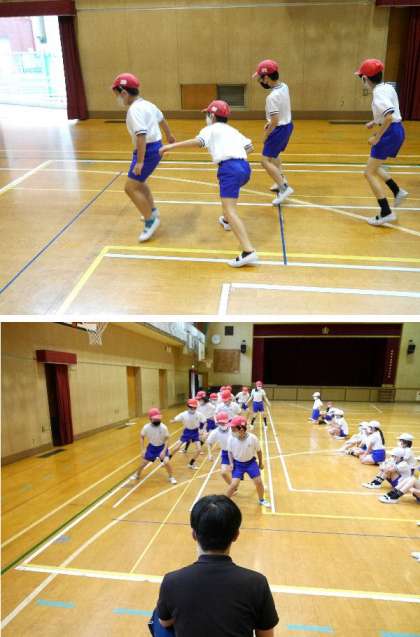 5年生は、全国体力テストの該当学年となっています。昨年度はありませんでした。たいさんの種目を順番に計測しています。今日は反復横跳びです。
