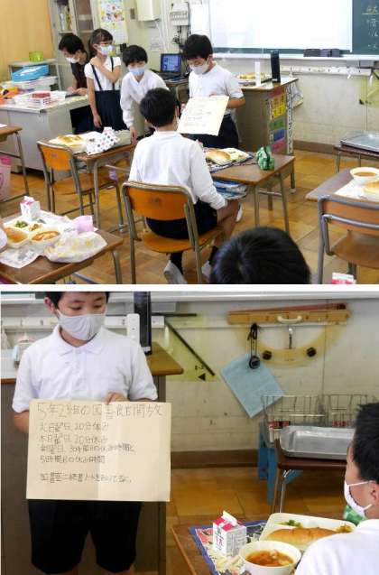 図書委員会から図書館解放のの案内と説明をしにきてくれています。
