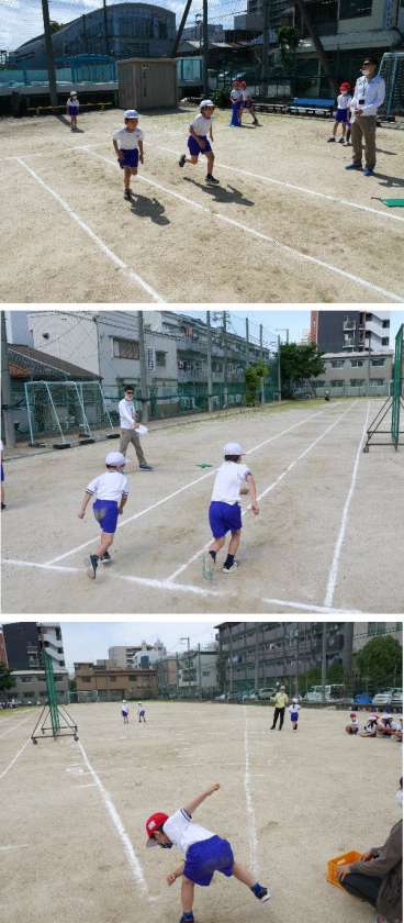 今日は2年生が、第2グランドでスポーツテストをしています。50メートル走とソフトボール投げをがんばっていました。