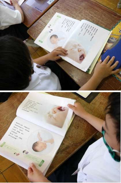 1年生が、「うまれたてのいのち」の道徳の授業をしています。あかちゃんに、どんなことばをかけてあげたいかな。いのちって大切だなと思ったのはどんなときかな。みんなで考えました。