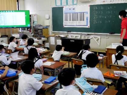 2年生が鍵盤ハーモニカを練習します。ドレミファソラシドど続けて演奏するには、指の使い方がむずかしいね。